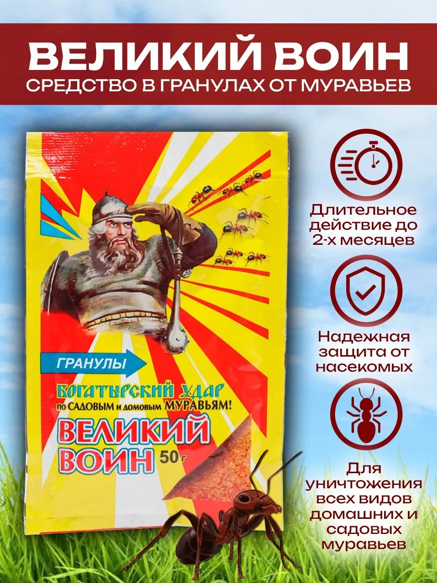 На сайте Peregnoi.com вы можете купить Великий Воин от муравьёв в упаковке 50 г с доставкой по Москве и Московской области. Мы обеспечим быстрое оформление заказа, самовывоз со склада и профессиональные консультации по применению.